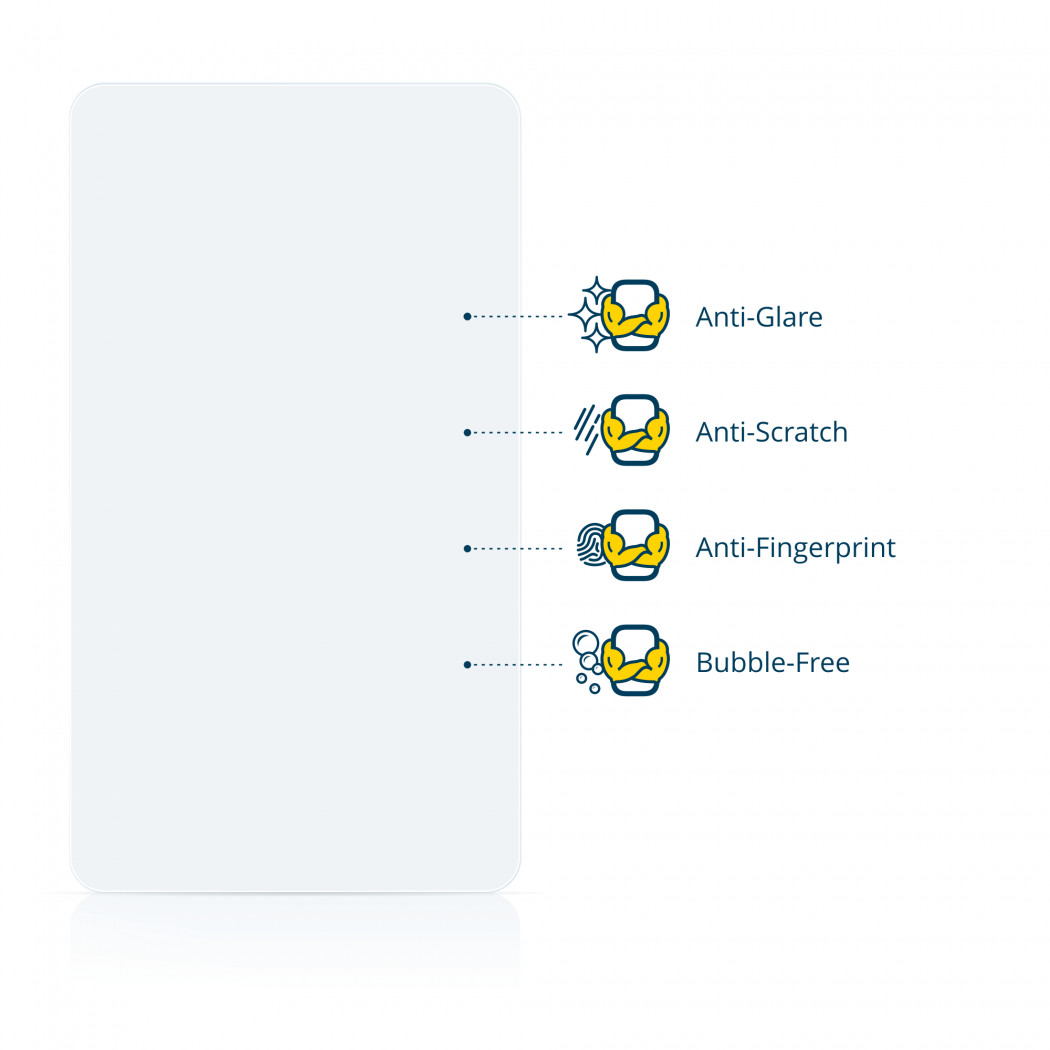 easy Mountable, hard-coated, residue-free removable, anti-fingerprint, Anti-Scratch, Matte/Anti-Glare, Washable