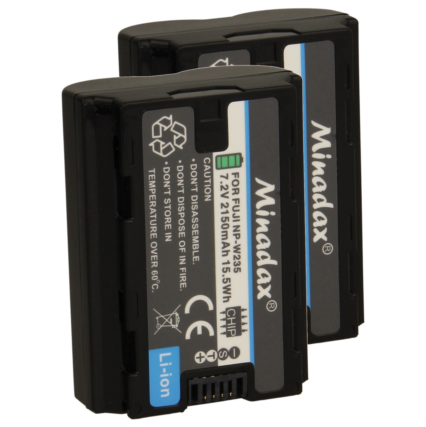2x Mindax Lithium-Ionen-Akku - Ersatz für Fujifilm NP-W235 X-T4 - 2150mAh -7,2 V