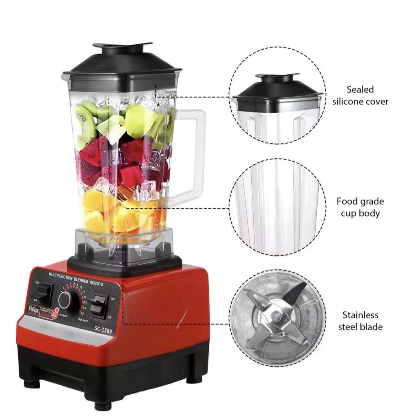 Blender Professionnel 2000W 2L Smoothie Glace Pilée Mixeur très Puissant