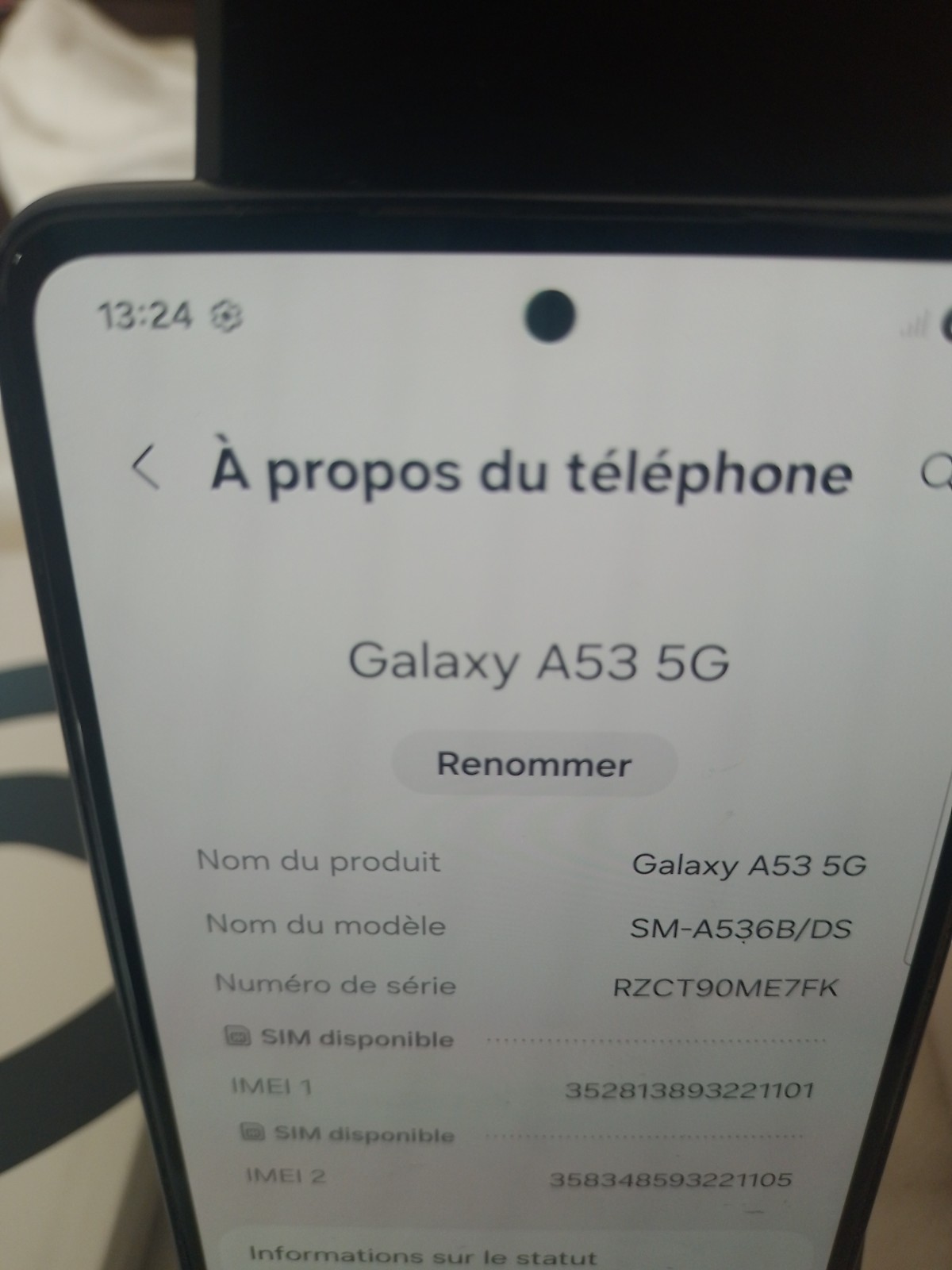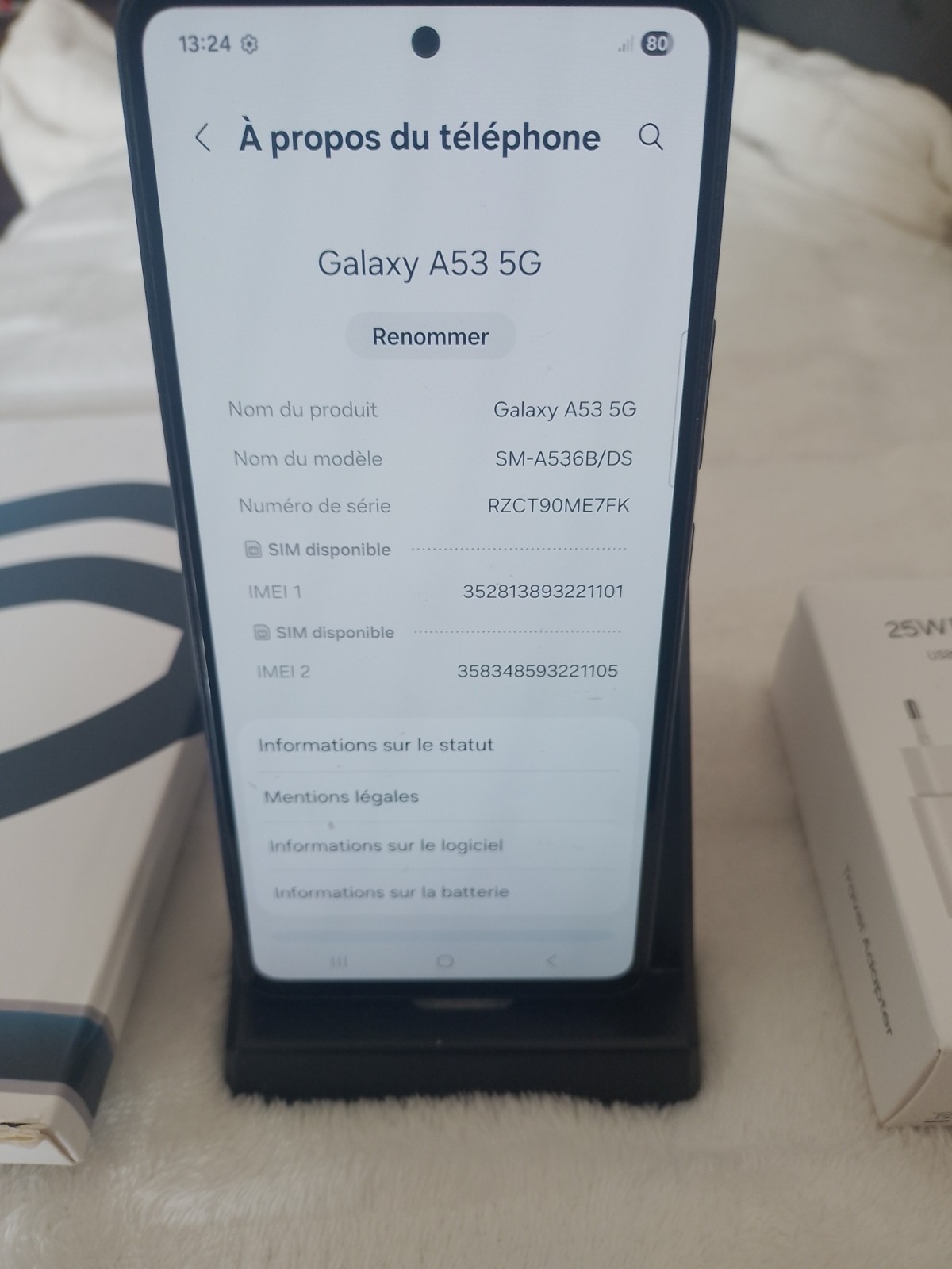 SAMSUNG GALAXY A53, 5g, 6/128 go+coque et film en verre trempé, quasi neuf