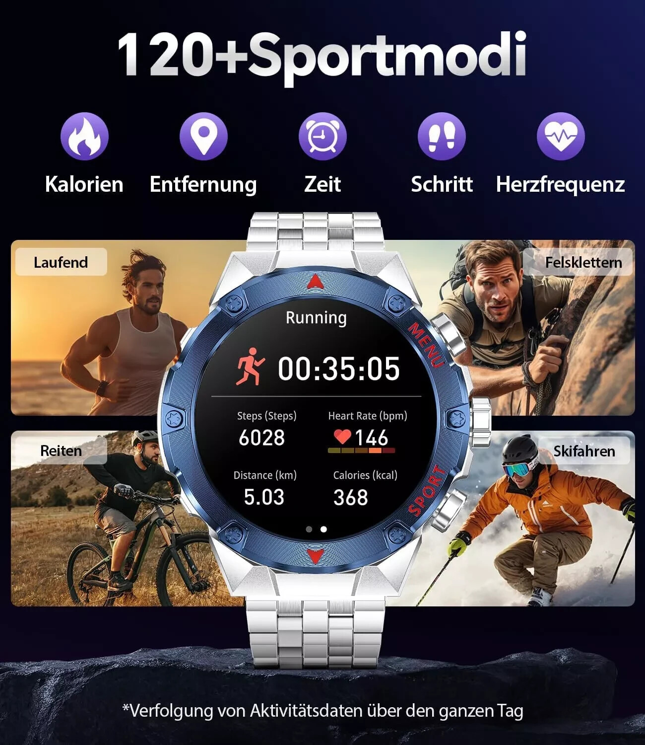 Always-On Display, Fitness Tracker, GPS, Touchscreen, Wasserdicht