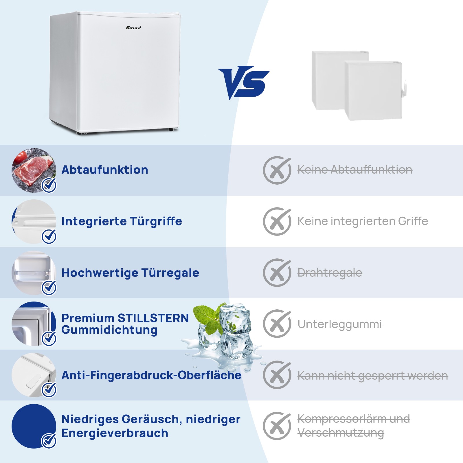 Einstellbare Regale, Leise, Regelbares Thermostat, Wirtschaftlich, Kompakte Abmessungen